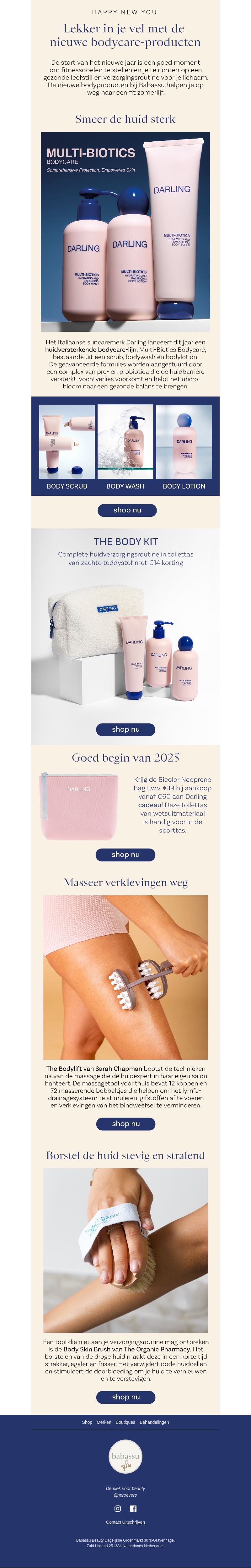 Start het nieuwe jaar met een gezonde huid met de nieuwe bodycare producten van Babassu. Ontvang kortingen op complete huidverzorgingssets en ontdek unieke massagetools om je huid fris te houden. Profiteer nu van exclusieve deals en begin het jaar stralend en verzorgd.