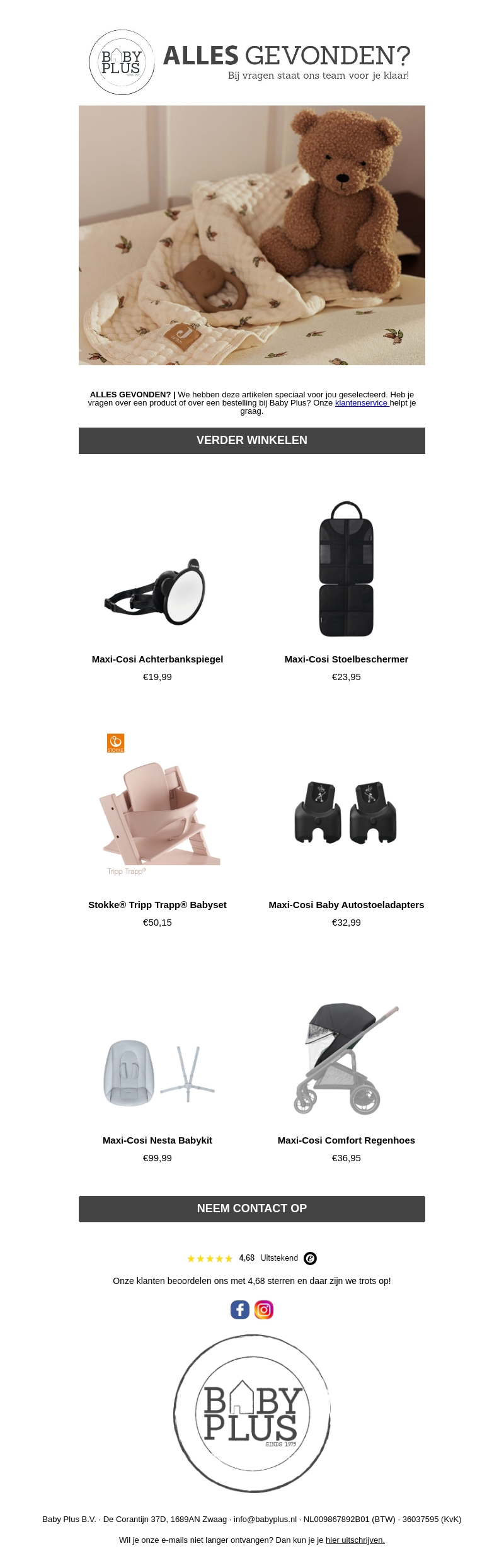 Heb je gevonden wat je zocht? Shop verder bij Baby Plus en ontdek een scala aan babyproducten van hoge kwaliteit, inclusief Maxi-Cosi en Stokke. Profiteer van onze aanbiedingen en maak je babyuitrusting compleet.