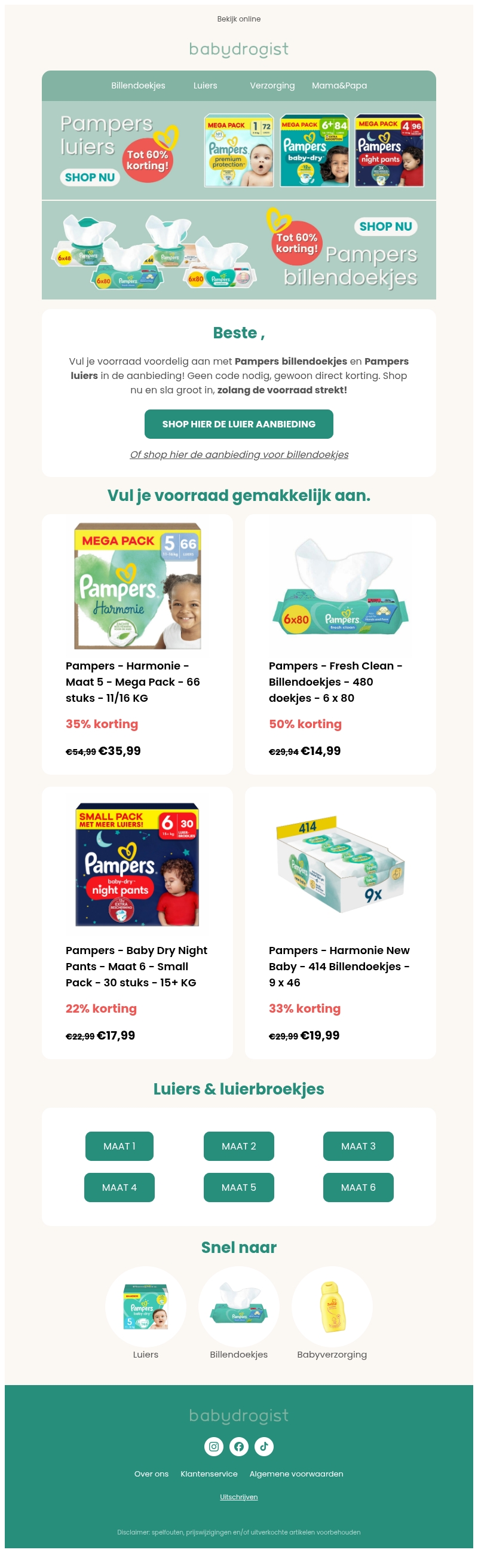 Tot -60% op Pampers baby-dry 🤩 Tot 100% lekvrije nachten