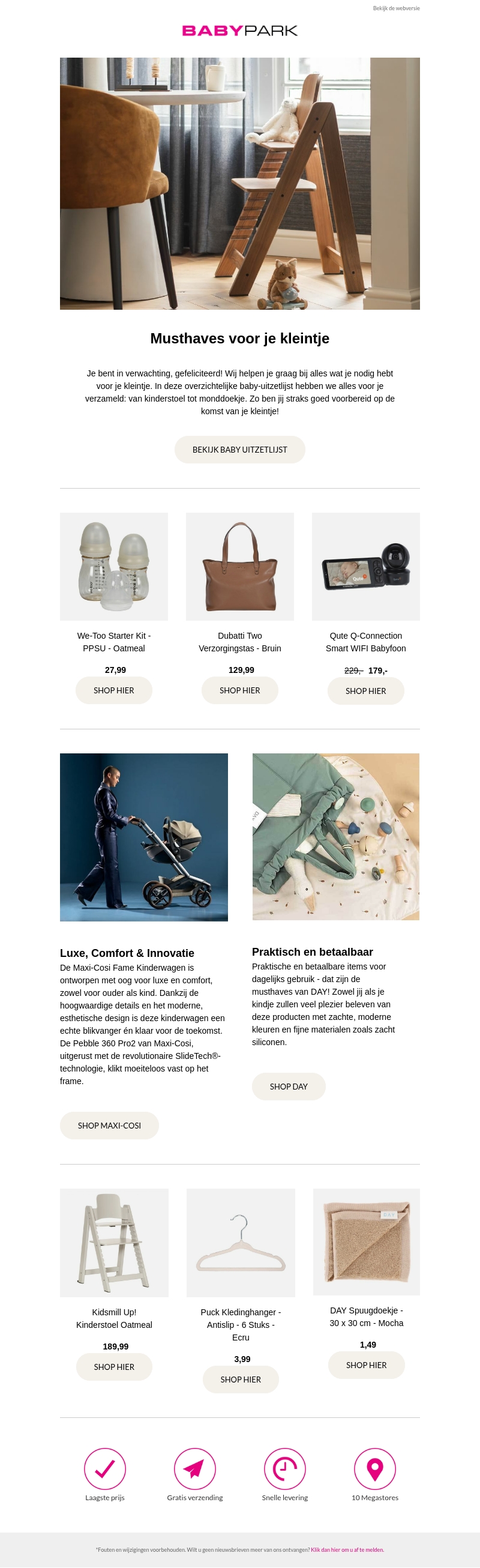 Ben je in verwachting? Gefeliciteerd! Wij helpen je met alle benodigdheden voor je kleintje. Van kinderstoelen tot kledinghangers, ontdek de beste producten om goed voorbereid te zijn op de komst van je baby.