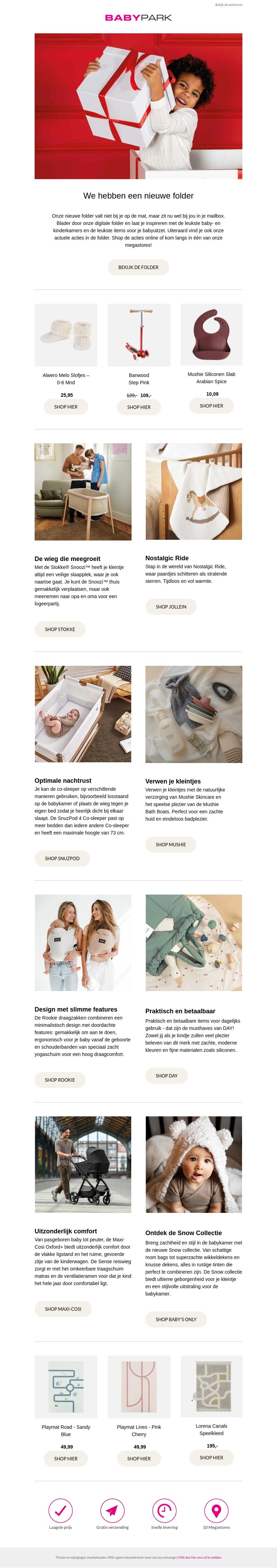 De nieuwste folder van Babypark staat vol met exclusieve aanbiedingen en inspiratie voor jonge ouders. Ontdek de mooiste kindermeubelen, stijlvolle kinderkleding en praktische kinderwagens. Bekijk ook onze handige accessoires voor ouders. Shop nu en profiteer van de scherpste deals!