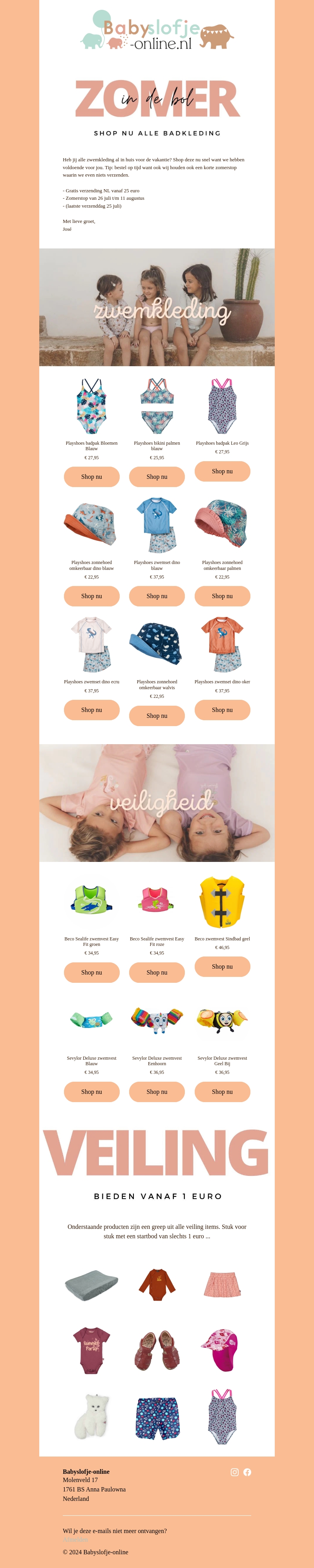 Heb je al zwemkleding in huis voor de vakantie? Ontdek nu de nieuwste collectie bij Babyslofje-online! Gratis verzending vanaf €30. Tijdelijk zomerkorting tot 1 augustus. Snelle levertijd van 2-5 dagen.