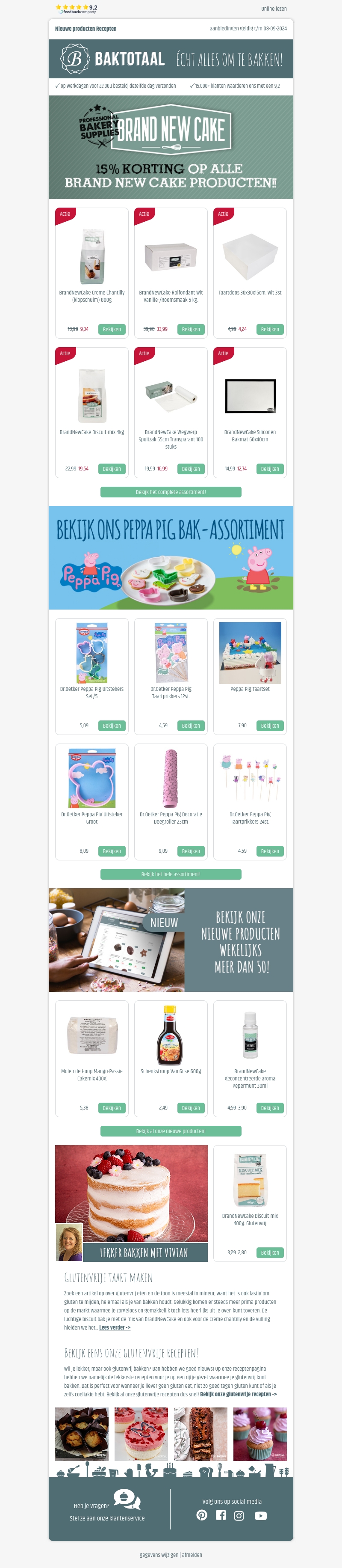 Ontvang 15% korting op alle BrandNewCake producten bij Baktotaal. Van bakkwalens tot biscuitmix, wij hebben alles wat je nodig hebt om de perfecte cake te maken. Mis deze geweldige aanbieding niet!