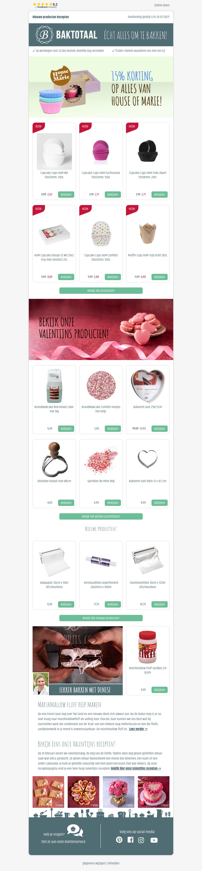 Ontvang 15% korting op het gehele assortiment van House of Marie. Of je nu cupcakes of valentijnsproducten nodig hebt, er is genoeg keuze. Bekijk de prachtige selectie aan bakproducten en maak van elke bakervaring een feest. Huis van Marie biedt alles om jouw bakcreaties te laten stralen. Mis deze kans niet om kwaliteit en creativiteit in je keuken te brengen.