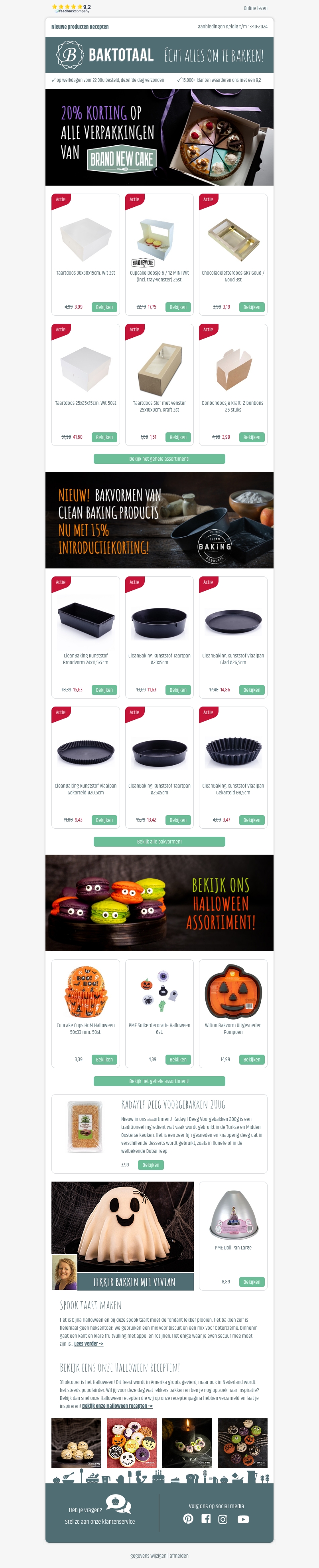 Ervaar nu 20% korting op alle verpakkingen van BrandNewCake. Of je nu op zoek bent naar taartdozen of andere bakverpakkingen, wij hebben het allemaal. Mis deze kans niet om je bakcreaties professioneel te presenteren. Bekijk ook onze nieuwe Clean Baking productlijn met 15% introductiekorting. En vergeet niet ons Halloween assortiment te ontdekken!
