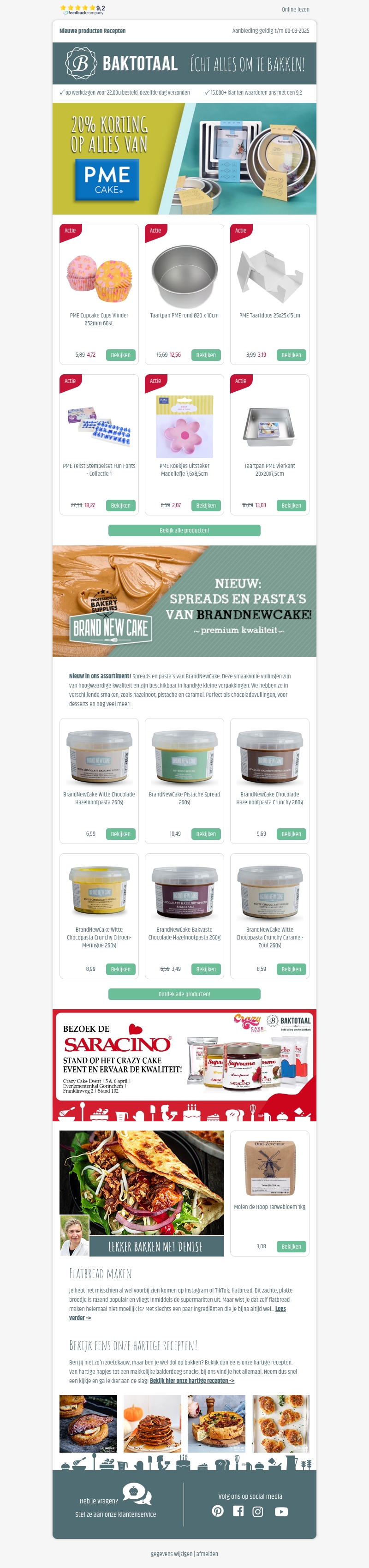 Ontdek de geweldige aanbiedingen met 20% korting op alles van PME bij Baktotaal.nl. Van taartpannen tot cupcake cups, vernieuw je bakgerei vandaag nog. Mis ook de nieuwe spreads en pasta’s van BrandNewCake niet. Perfect voor elke bakliefhebber!