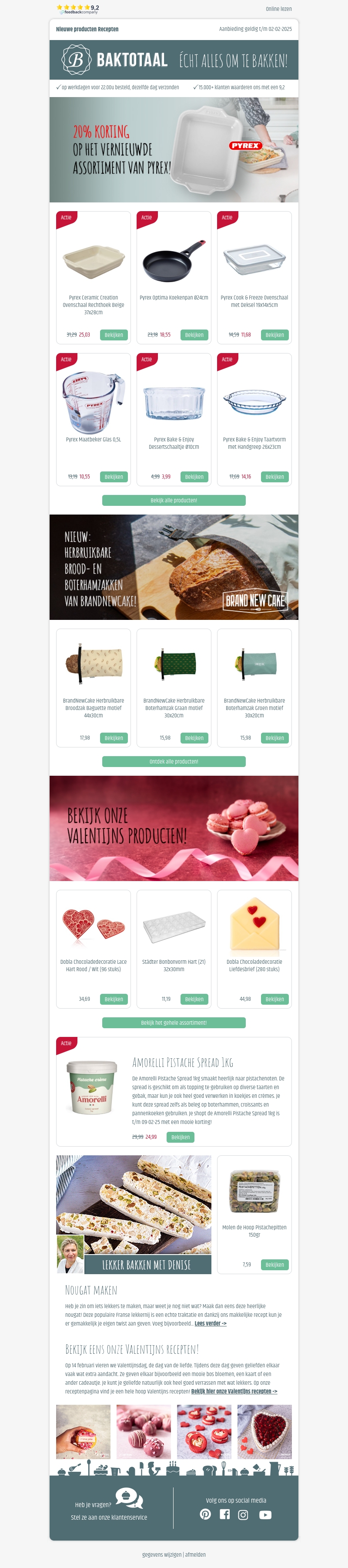 Ontdek het vernieuwde assortiment van Pyrex met een aantrekkelijke korting van 20%. Van keramische schalen tot handige opbergdozen; Pyrex biedt alles wat je nodig hebt. Ideaal voor keukens van alle maten. Grijp deze kans snel voordat de aanbieding eindigt. Bekijk ook onze Valentijnsproducten voor romantische gelegenheden.