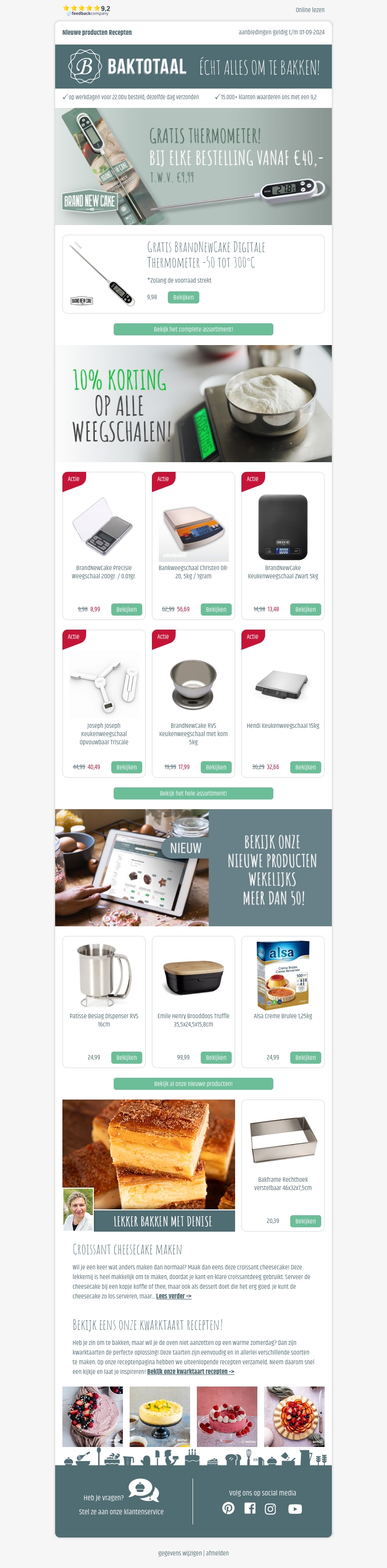 Profiteer nu van een gratis thermometer bij elke bestelling vanaf €40 bij BakTotaal. Deze actie geldt zolang de voorraad strekt, dus wees er snel bij! Ontdek daarnaast onze 10% korting op alle weegschalen en bekijk de nieuwste keukenproducten.