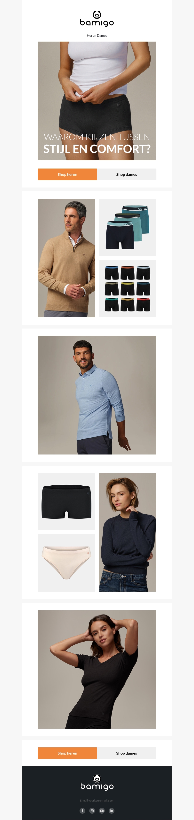 Waarom kiezen tussen stijl en comfort? Bij Bamigo hoef je dat niet te doen. Ontdek onze nieuwste collectie die perfect is voor zowel heren als dames. Geniet van zacht en ademend materiaal dat de hele dag comfort biedt.