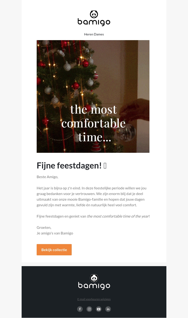 Bamigo wenst al haar klanten fijne feestdagen en bedankt hen voor hun vertrouwen. Deze nieuwsbrief straalt warmte, liefde en comfort uit, geheel passend bij de gezellige tijd van het jaar. Geniet van de meest comfortabele momenten met de unieke collectie van Bamigo.