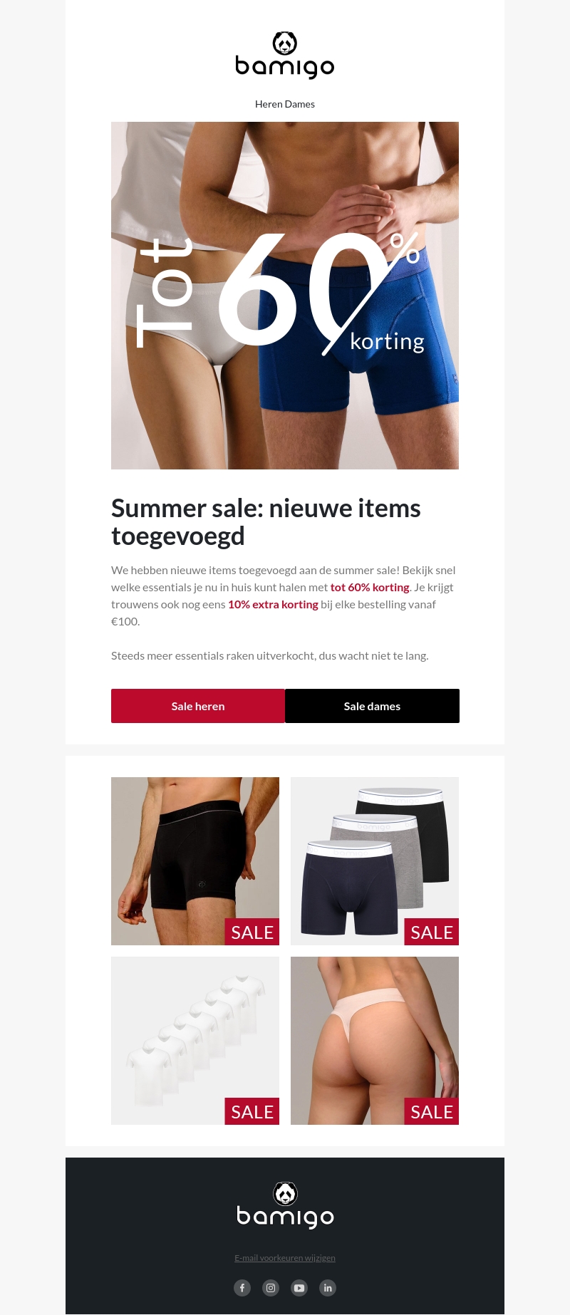 We hebben nieuwe items toegevoegd aan onze summer sale! Profiteer van kortingen tot 60% op diverse essentials. Bovendien krijg je 10% extra korting bij bestellingen boven €100. Wacht niet te lang, want de voorraad is beperkt.