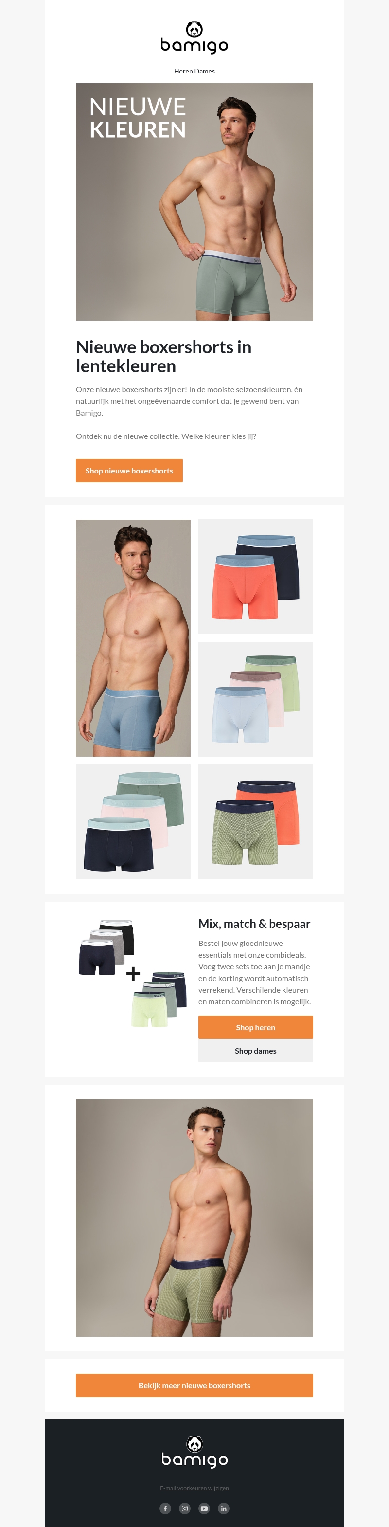 Bamigo presenteert zijn nieuwe collectie boxershorts in trendy lentekleuren. Geniet van het ultieme comfort en de veelzijdige stylingopties. Mix en match om jouw ideale combideal te creëren. Kies vandaag nog jouw favoriete kleuren.