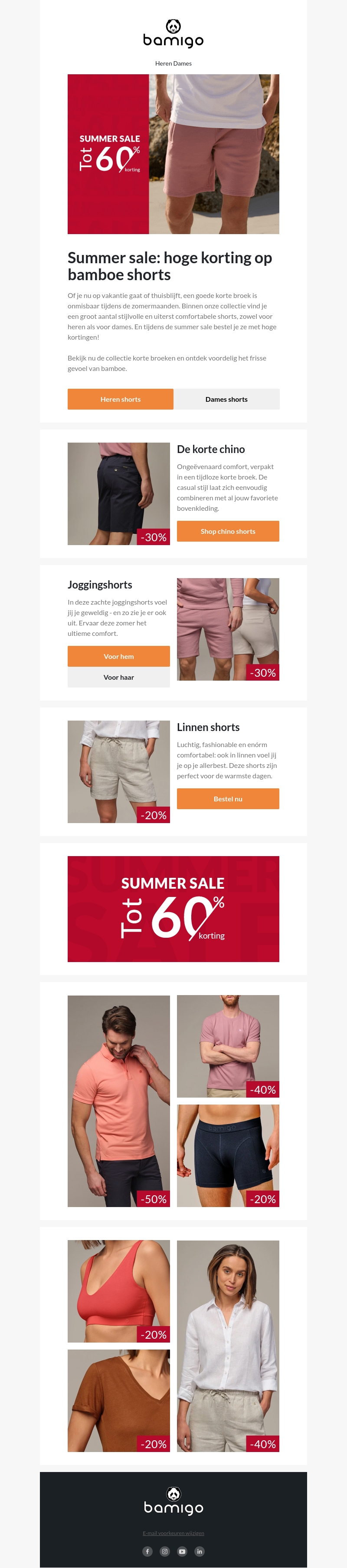 Profiteer van onze zomeruitverkoop en geniet van tot wel 60% korting op bamboe shorts. Of je nu op vakantie gaat of thuis blijft, een goede korte broek is onmisbaar. Onze collectie biedt stijlvolle en comfortabele opties voor zowel dames als heren. Mis deze kans niet om te shoppen met hoge kortingen!