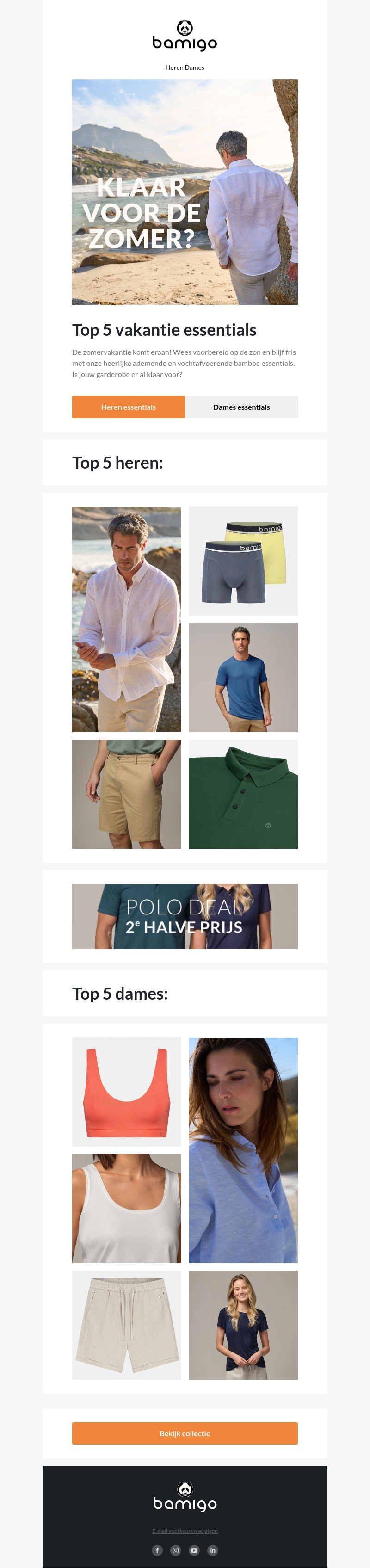 De zomervakantie komt eraan en Bamigo heeft de perfecte essentials voor jou geselecteerd. Van ademende herenhemden tot stijlvolle dameskleding, ontdek de top 5 items die je nodig hebt voor een ontspannen zomer. Bekijk onze collecties voor heren en dames, en profiteer van exclusieve deals.