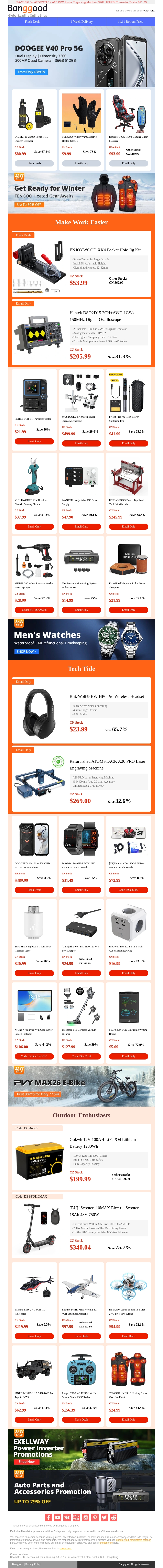 Mis de spannende aanbiedingen van Banggood tijdens het 11.11 Festival niet. Koop elektrisch verwarmde handschoenen voor slechts €9,99 en zuurstofcilinders voor €80,99. Bereid je voor op de winter met onverslaanbare prijzen. Perfect voor geschenken en persoonlijke aankopen.