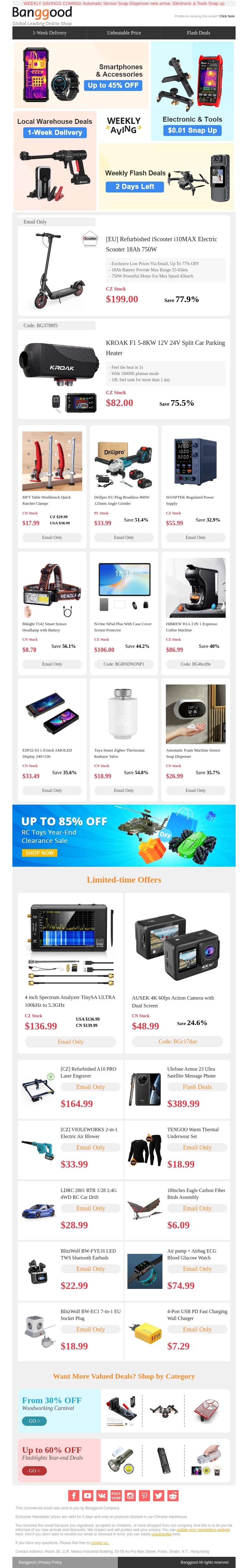 Mis de kans niet om een iScooter 750W te bemachtigen voor maar $199. Daarnaast zijn er autoverwarmers met een ongelooflijke korting van 75%. Perfect voor gadgetliefhebbers die op zoek zijn naar kwaliteit en besparen op hun aankopen.