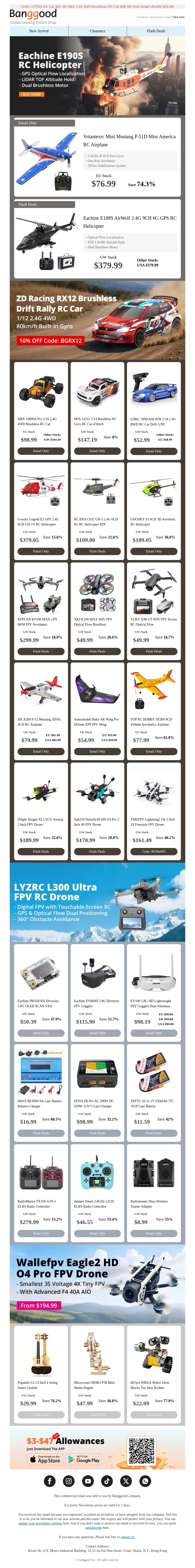 [Hot Sale] Eachine E188S Snap Up Only $379.99! Volantexrc Mini Mustang P-51D Miss America Only $76.99! Shop Now>>