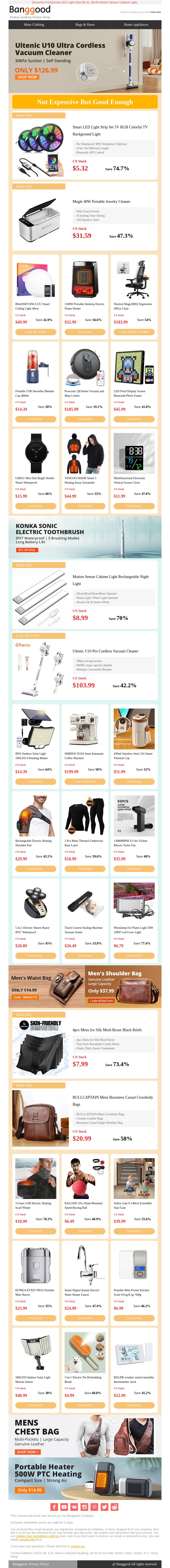 Ontdek de nieuwste aanbiedingen van Banggood! De Ultenic U10 Ultra Cordless Vacuum Cleaner nu voor slechts $126.99 en 4 stuks ijszijden herenslips voor maar $7.99. Deze nieuwsbrief bevat nog veel meer geweldige producten met flinke kortingen. Grijp uw kans en verbeter uw huis of garderobe met deze deals. Bezoek onze website voor meer informatie en shop nu!