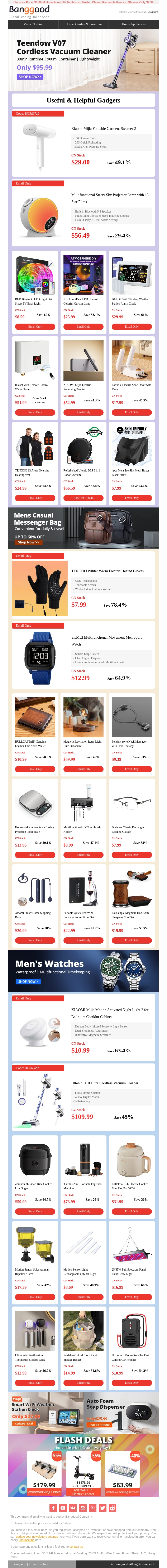 Mis deze geweldige deals niet! Ontvang de Teendow V07 draadloze stofzuiger voor slechts $95,99 en een sterrenhemel projectorlamp voor $56,49. Deze nieuwsbrief biedt ook kortingen op tal van andere handige gadgets en producten. Shop nu en geniet van fantastische besparingen. Verfraai uw huis en werkruimte met onze selectie van toptechnologieartikelen. Bezoek onze website voor meer details.