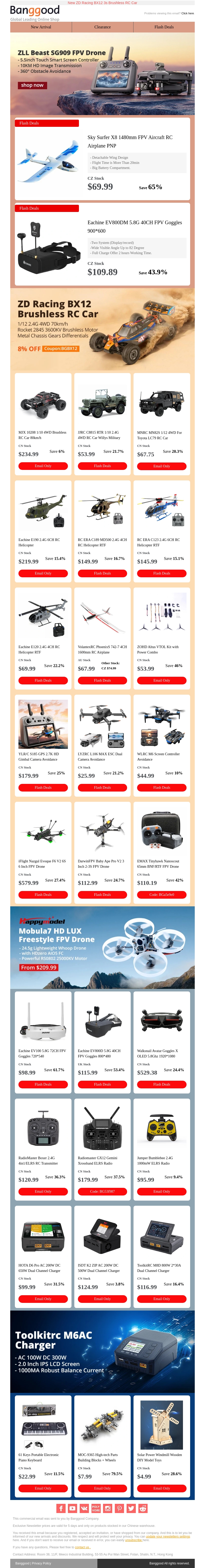 RC Toys New Year Sale>>Sky Surfer X8 FPV Airplane From $69.99!JJRC Willys Military Only $53.99! Eachine E190 Dual Brushless Motor Helicopter $219.99,More >>