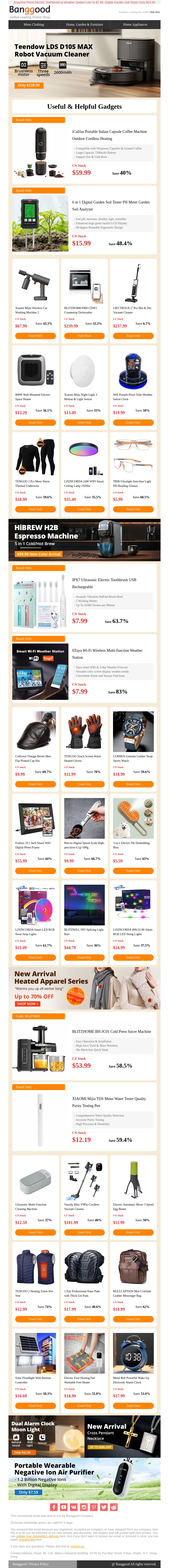 Deze nieuwsbrief staat vol met geweldige aanbiedingen. Bespaar op de Teendow D10S MAX Robotstofzuiger voor slechts $228,99 en de iCafilas Draagbare Koffiemachine voor $59,99. Bekijk ook andere handige gadgets en accessoires, perfect voor elk huishouden. Mis deze kans niet om hoogwaardige producten te kopen tegen gereduceerde prijzen. Shop nu en ontdek meer geweldige deals!