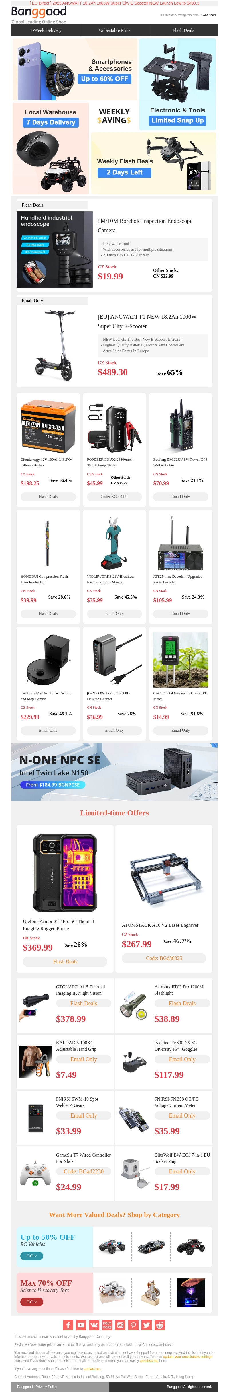 Mis deze geweldige aanbiedingen van Banggood niet! Voor slechts $19.99 koop je een veelzijdige inspectiecamera en voor $45.99 gaat de krachtige jumpstarter van jou zijn. Of je nu handige gadgets zoekt voor thuis of tools voor professioneel gebruik, deze deals zijn perfect voor iedere klusser. Houd je mobiel opgeladen en gereedschap paraat met deze topaanbiedingen.