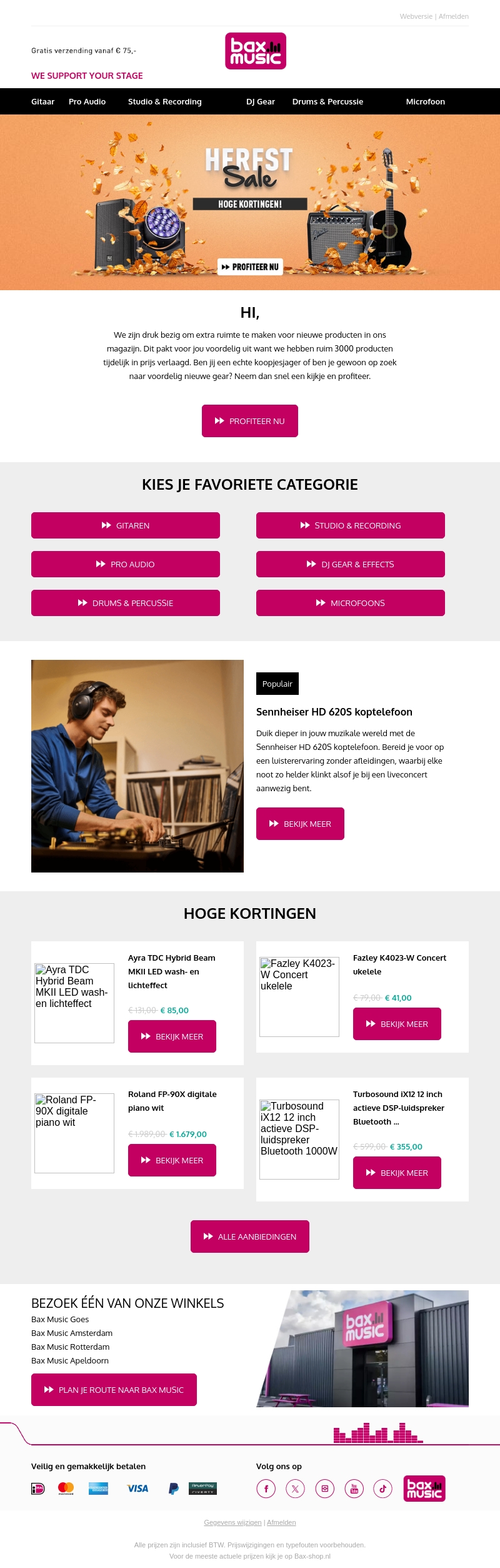 Bij Bax Music zijn we bezig om ruimte te maken voor nieuwe producten. Daarom hebben we maar liefst 3000 items tijdelijk in prijs verlaagd. Of je nu een koopjesjager bent of gewoon op zoek naar goede deals, er is voor ieder wat wils!