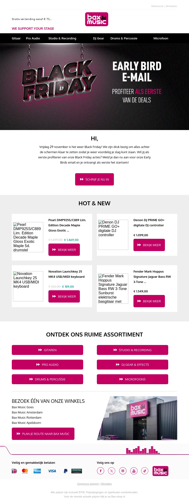 Vrijdag 29 november is het weer Black Friday! Profiteer als eerste van onze exclusieve deals door je aan te melden voor onze Early Birds e-mail. Ontdek nu ons nieuwste assortiment met scherpe kortingen en bereid je voor om je slag te slaan!