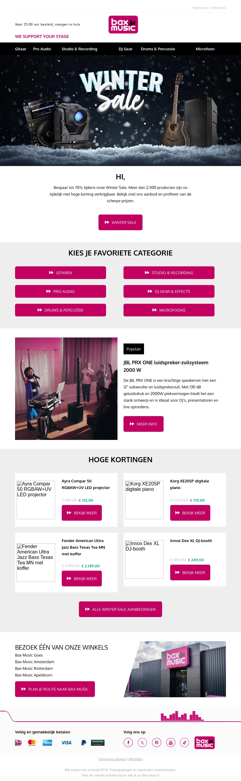 Bespaar tot 70% tijdens onze Winter Sale. Meer dan 2.500 producten met hoge kortingen. Kies uit een breed scala aan muziekinstrumenten en audioapparatuur. Haal snel je favoriete producten in huis voordat ze uitverkocht zijn. Profiteer van scherpe prijzen en topmerken voor iedere muzikant. Mis deze kans niet!