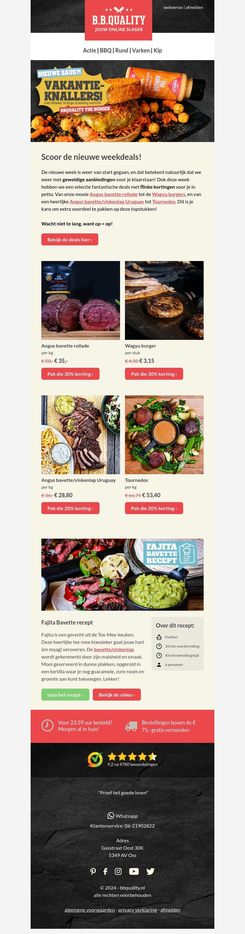 De nieuwe week is van start gegaan met fantastische BBQ-deals bij BBQuality. Deze week kun je genieten van kortingen tot wel 30% op Angus bavette rollade, Wagyu burgers, en meer. Mis deze kans niet en pak die topstukken voor een heerlijk barbecuefeestje.