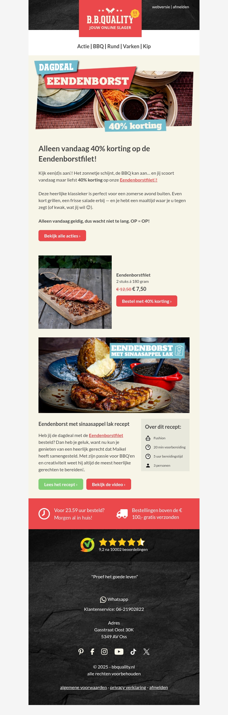 BBQ-weer 🌞 + Eendenborstfilet met 40% korting 🦆 = perfecte dag 🔥