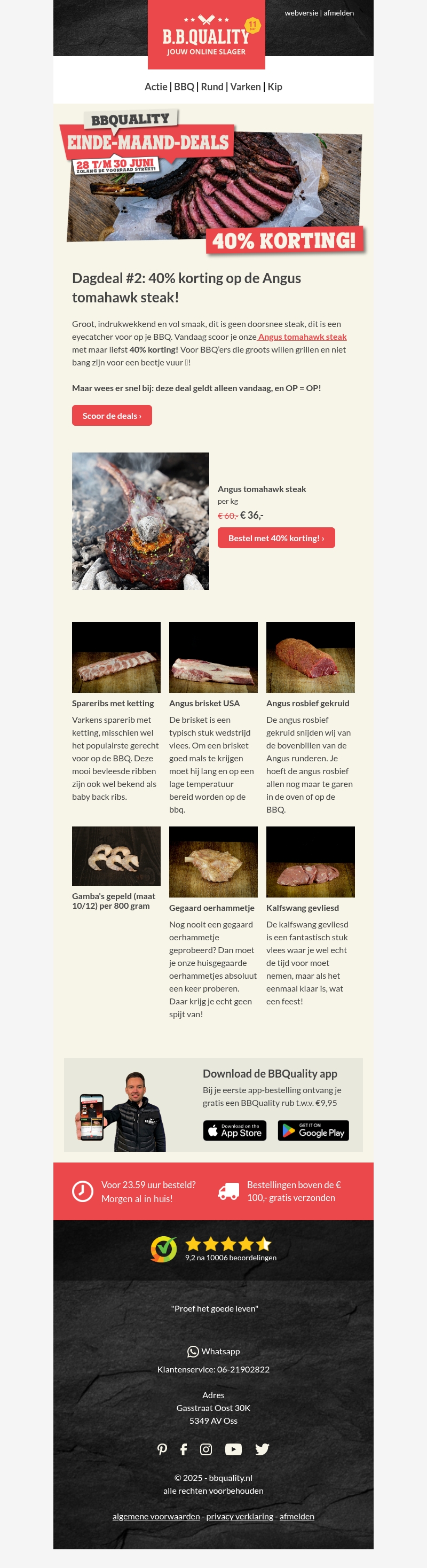 EINDE-MAAND-DEAL #2: 40% korting op de Angus tomahawk steak đ„!