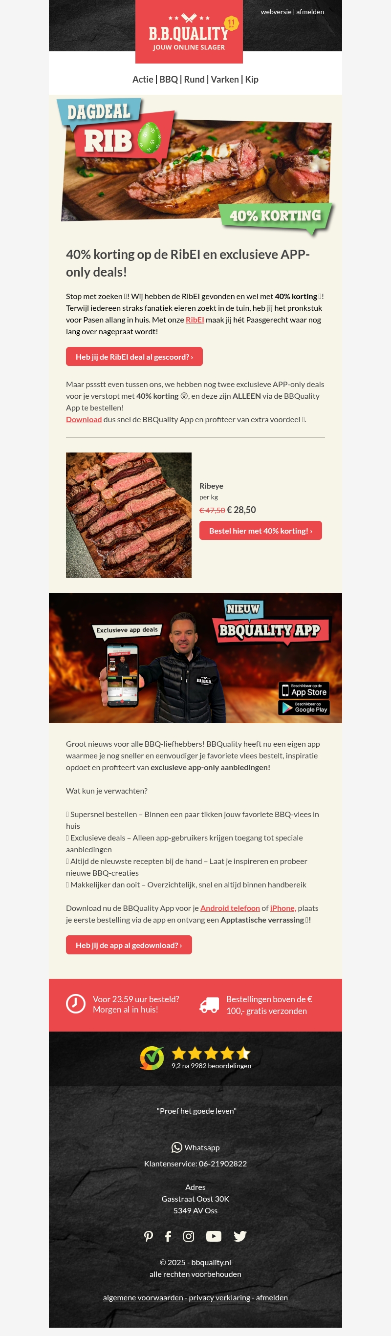 Pasen staat voor de deur🐣! Bestel vandaag nog jouw Ribeye met 40% korting en maak jouw Paasmenu compleet!