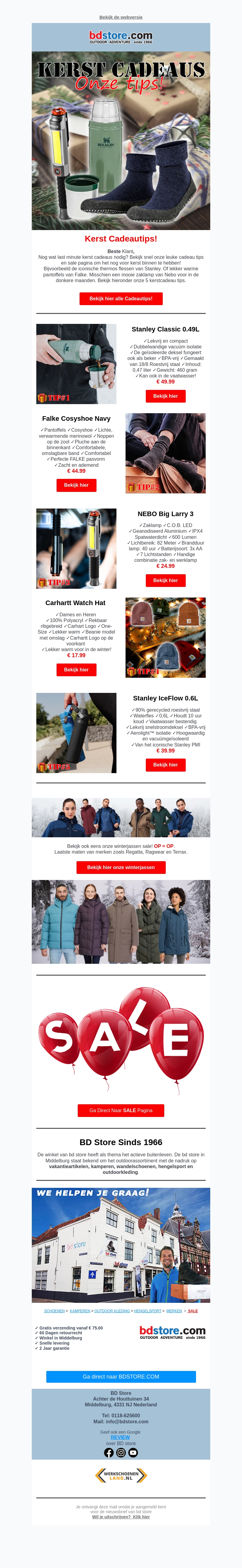 Ontdek de ultieme kerstcadeautips met onze exclusieve selectie cadeaus. Van comfortabele sokken tot duurzame drinkflessen, wij hebben alles wat je nodig hebt om de kerst te verwennen. Mis de kans niet om fantastische cadeaus te grabbel bij de speciale kerstdeals. Bekijk onze uitgebreide selectie en profiteer van de laatste kortingen op winterjassen. Ga direct naar onze SALE pagina voor meer onvergetelijke aanbiedingen!