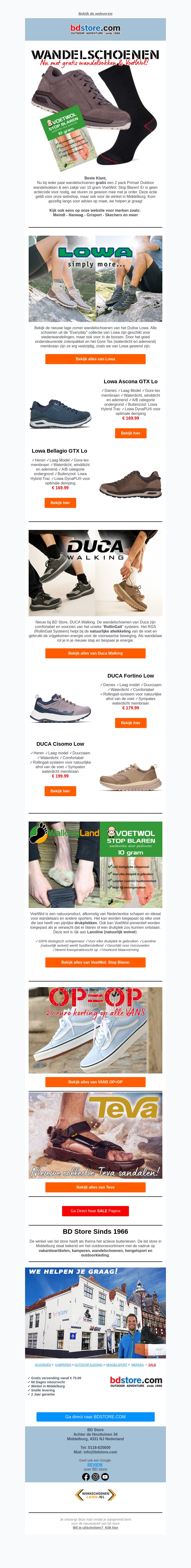 Ontdek onze nieuwste collectie wandelschoenen en profiteer van geweldige kortingen. Van Lowa tot Duca en Teva, we hebben topmerken voor jou geselecteerd. Vergeet niet onze speciale aanbieding voor Voetwold te bekijken. Koop nu en bereid je voor op je volgende avontuur!