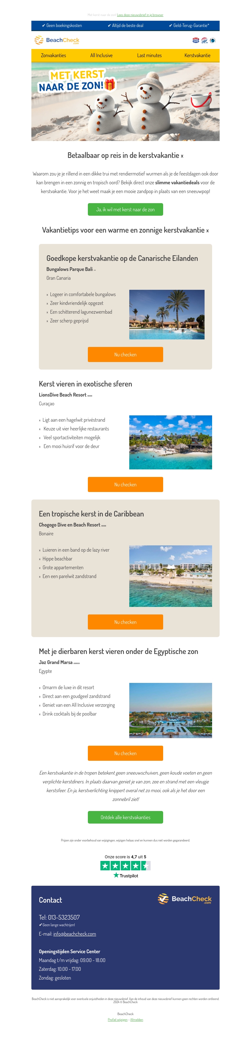 Beleef een unieke kerstervaring met zon, zee en strand. Kies voor een verblijf op de Canarische Eilanden, geniet van de exotische sferen op Curaçao, of ontspan op Bonaire. Voor een luxe ervaring ga je naar Egypte. Ontdek alle kerstvakantietips voor een warme kerst onder de zon!