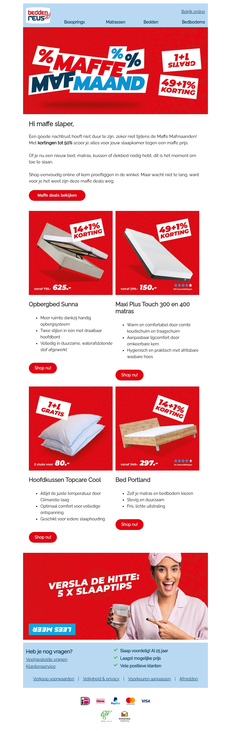 Maffe kortingen op jouw nachtrust: tot 50% korting!