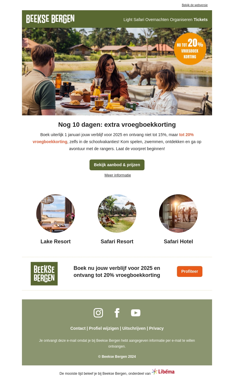 Geniet van een unieke ervaring bij Beekse Bergen met tot 20% vroegboekkorting. Boek uw verblijf voor 2025, zelfs tijdens schoolvakanties. Ontdek de natuur, zwem en beleef avonturen met rangers. Mis deze kans niet en ervaar het avontuur bij Beekse Bergen.