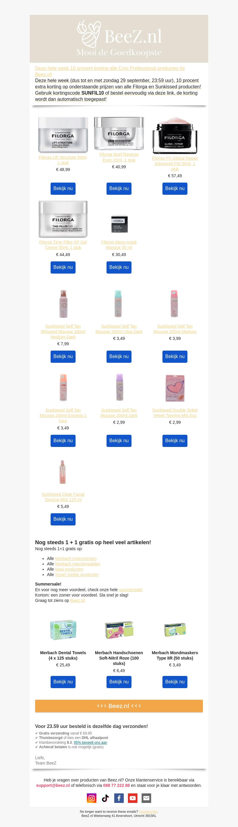 Nu 10 procent korting op Filorga en Sunkissed op BeeZ.nl!