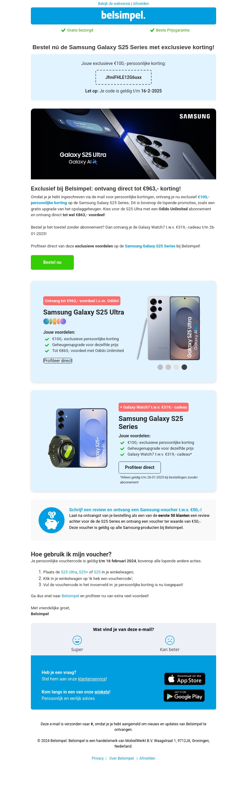 Ontdek de nieuwste Samsung Galaxy S25 Series bij Belsimpel met een exclusieve €100,- korting. Profiteer van lopende promoties zoals gratis geheugenupgrades en unieke cadeau’s bij je aankoop. Sluit een Odido Unlimited abonnement af en bespaar direct €863,-. Wacht niet langer en upgrade je technologie vandaag nog!