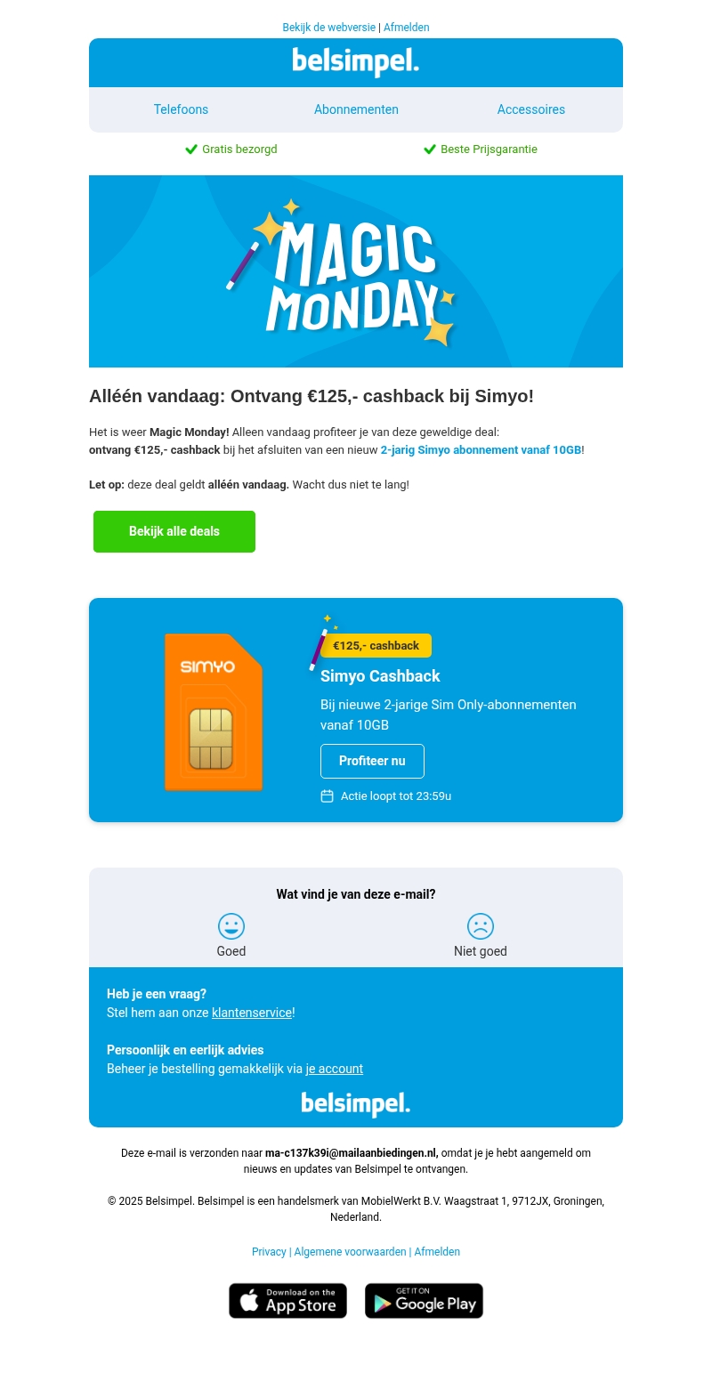Alléén vandaag: €125,- cashback bij Simyo!