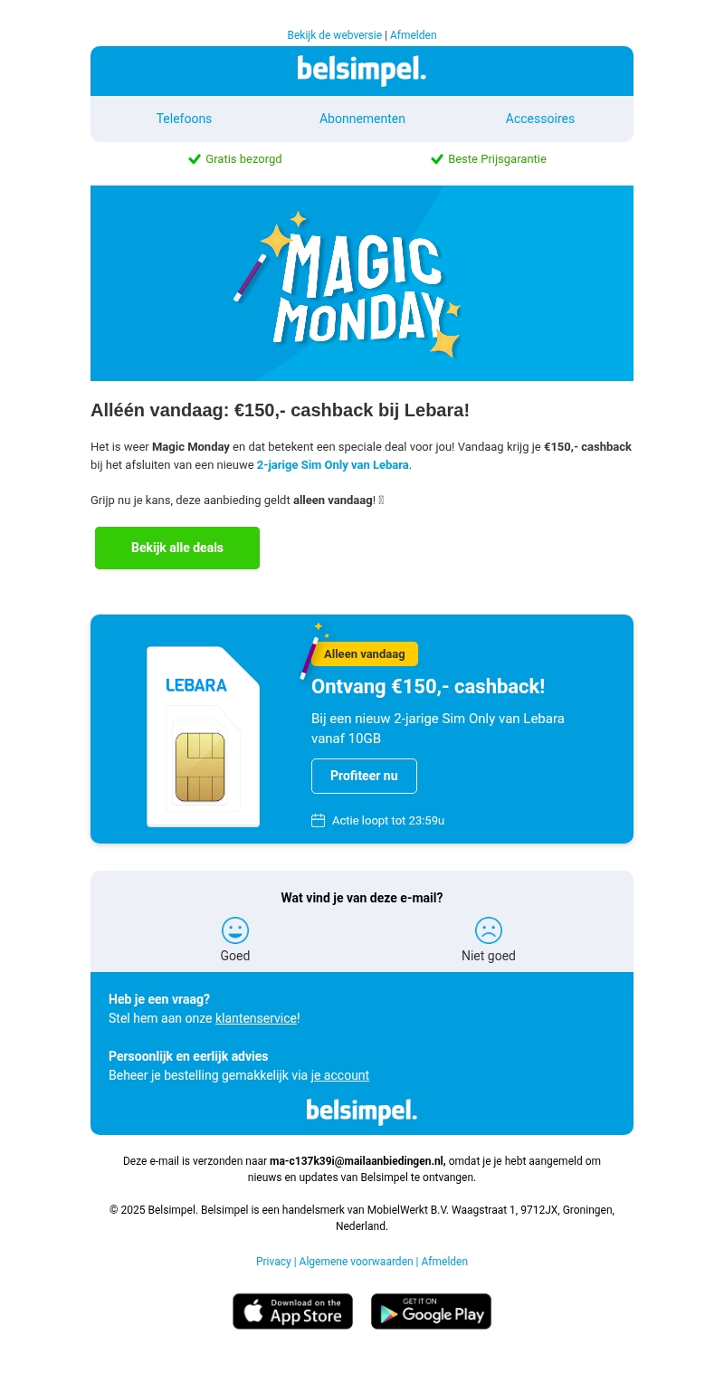 Krijg nu €150,- cashback bij Simyo!