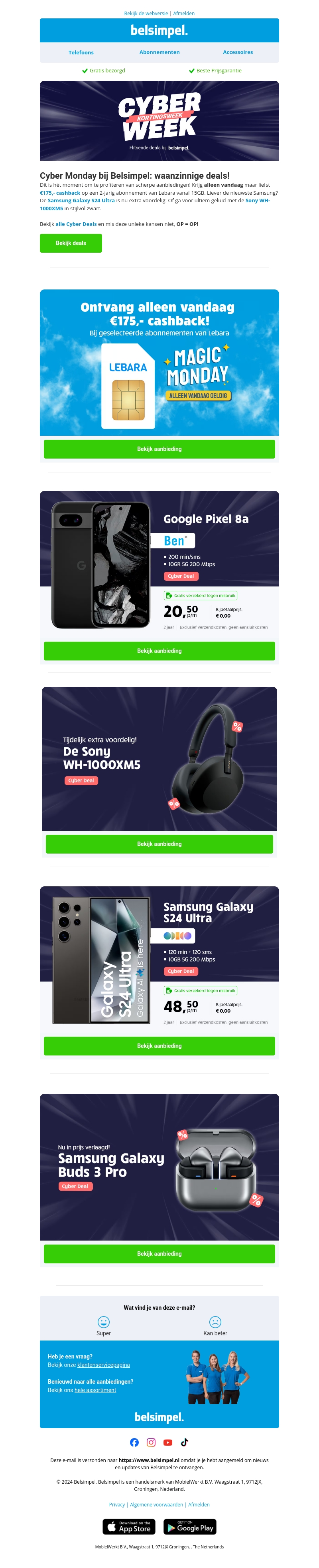 Pak alleen vandaag €175,- cashback bij een 2-jarig Lebara-abonnement. Ontdek ook andere geweldige Cyber Monday aanbiedingen, zoals de Google Pixel 8a en Samsung Galaxy S24 Ultra. Beperkte tijd en voorraad, dus grijp je kans nu.