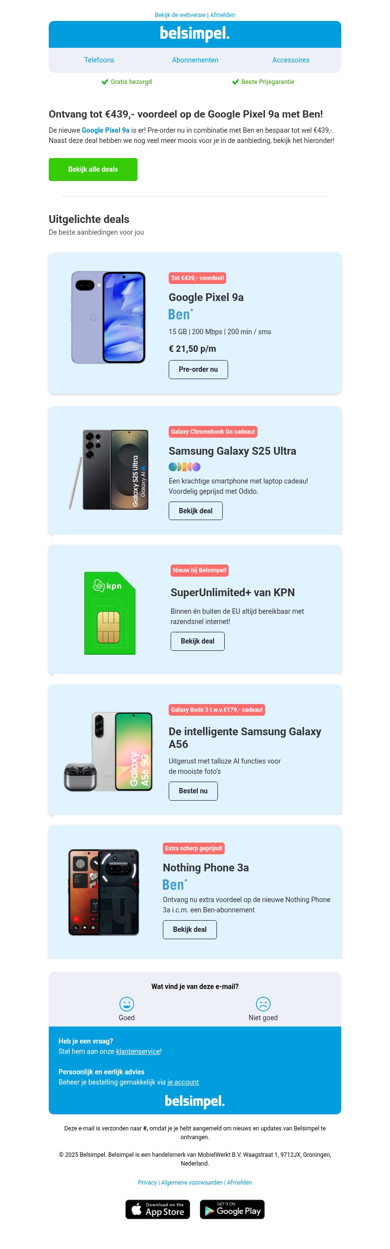 Ontvang tot €439,- voordeel op de nieuwe Google Pixel 9a met Ben