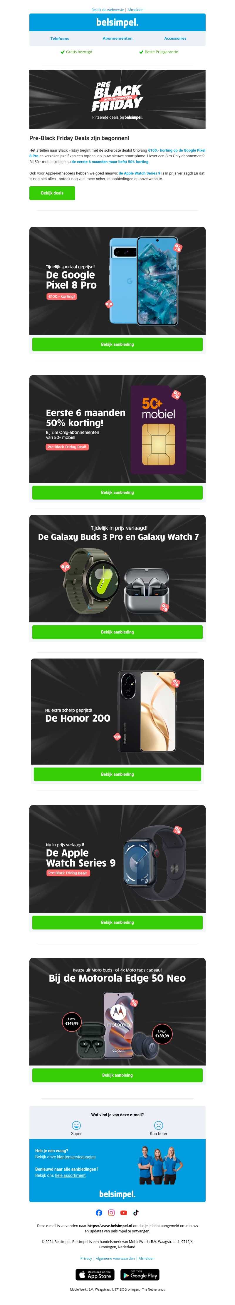 De Pre-Black Friday Deals zijn begonnen bij Belsimpel! Profiteer van fantastische kortingen op de nieuwste smartphones zoals de Google Pixel 8 Pro en de Honor 200. Daarnaast zijn er spectaculaire aanbiedingen op smartwatches en andere accessoires. Haast je en grijp deze deals voordat ze weg zijn!