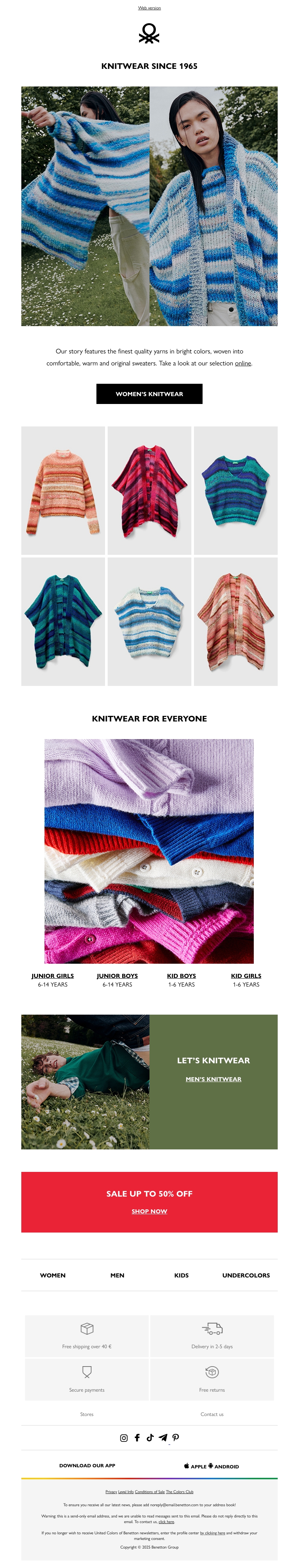 Onze knitwear collectie voor dames en kinderen biedt hoogwaardige materialen en levendige kleuren. Met meer dan 50 jaar ervaring, combineren we stijl met comfort. Bekijk de selectie en vernieuw je garderobe met warme en originele truien. Mis de korting tot 50% niet, en shop nu veilig en gemakkelijk.