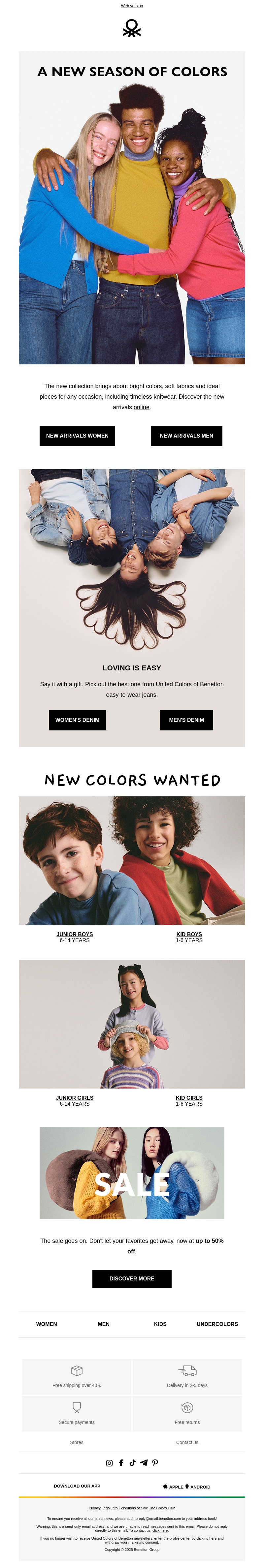 De nieuwe Benetton collectie biedt heldere kleuren en zachte stoffen voor elke gelegenheid. Ontdek tijdloze breisels en de nieuwste trends voor mannen, vrouwen, en kinderen. Shop nu en geef een kleurrijk cadeau aan jezelf of een geliefde.