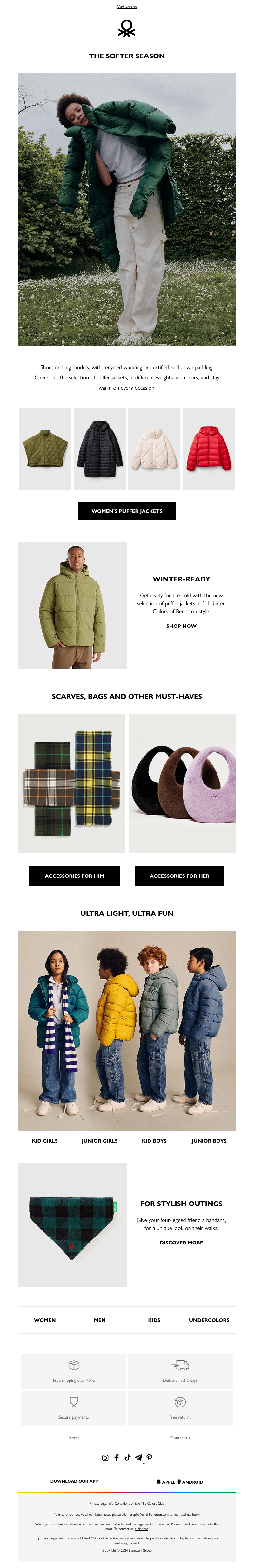 Bereid je voor op de winter met onze collectie stijlvolle puffer jackets voor mannen, vrouwen en kinderen. Kies uit een verscheidenheid aan kleuren en stijlen om warm en trendy te blijven. Vergeet niet onze accessoires zoals sjaals en tassen voor de perfecte finishing touch.