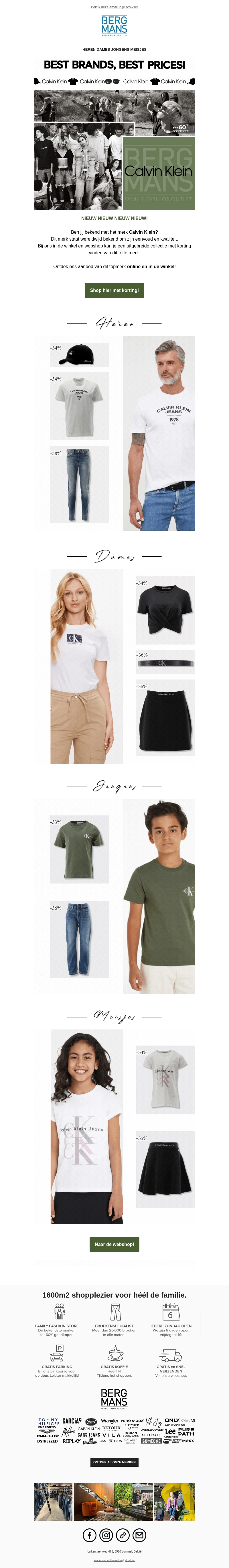 Ben jij bekend met het merk Calvin Klein? Ontdek bij ons de veelzijdigheid van dit iconische merk en shop de nieuwste collectie met korting. Profiteer van geweldige aanbiedingen voor heren, dames, jongens en meisjes. Bezoek onze online winkel of kom langs in de 1600m2 grote winkel in Etten-Leur!