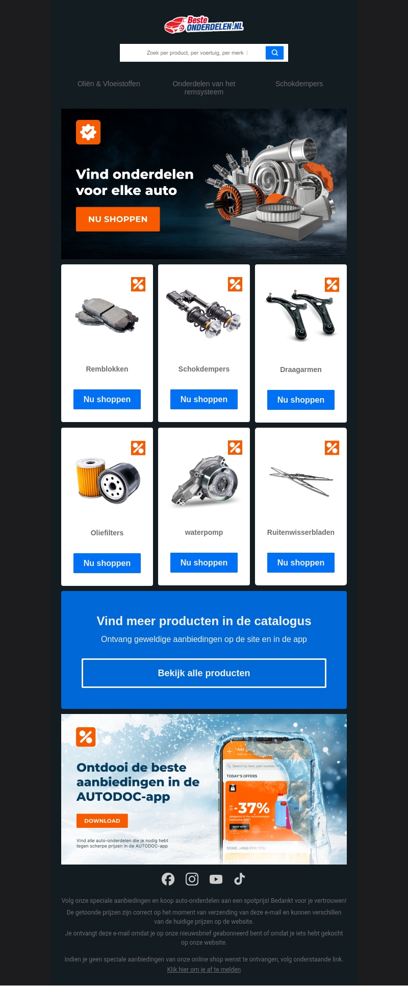 Ontdek de nieuwste aanbiedingen voor auto-onderdelen bij BesteOnderdelen.nl. Of je nu op zoek bent naar remblokken, schokdempers, draagarmen, of oliefilters, wij hebben het allemaal. Winkel nu en profiteer van scherpe prijzen. Bekijk onze volledige catalogus voor nog meer deals. Download de AUTODOC-app voor extra kortingen!